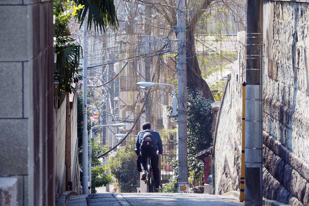 坂を写真や動画に撮ろうとした時に必ず直面する問題が、「坂が坂に見えない」ということ。坂の傾斜を捉え、立体感ある景色の魅力がうまく伝わるようにするには、道だけでなく周囲の建物なども含めて画角におさめるのがポイントだ。