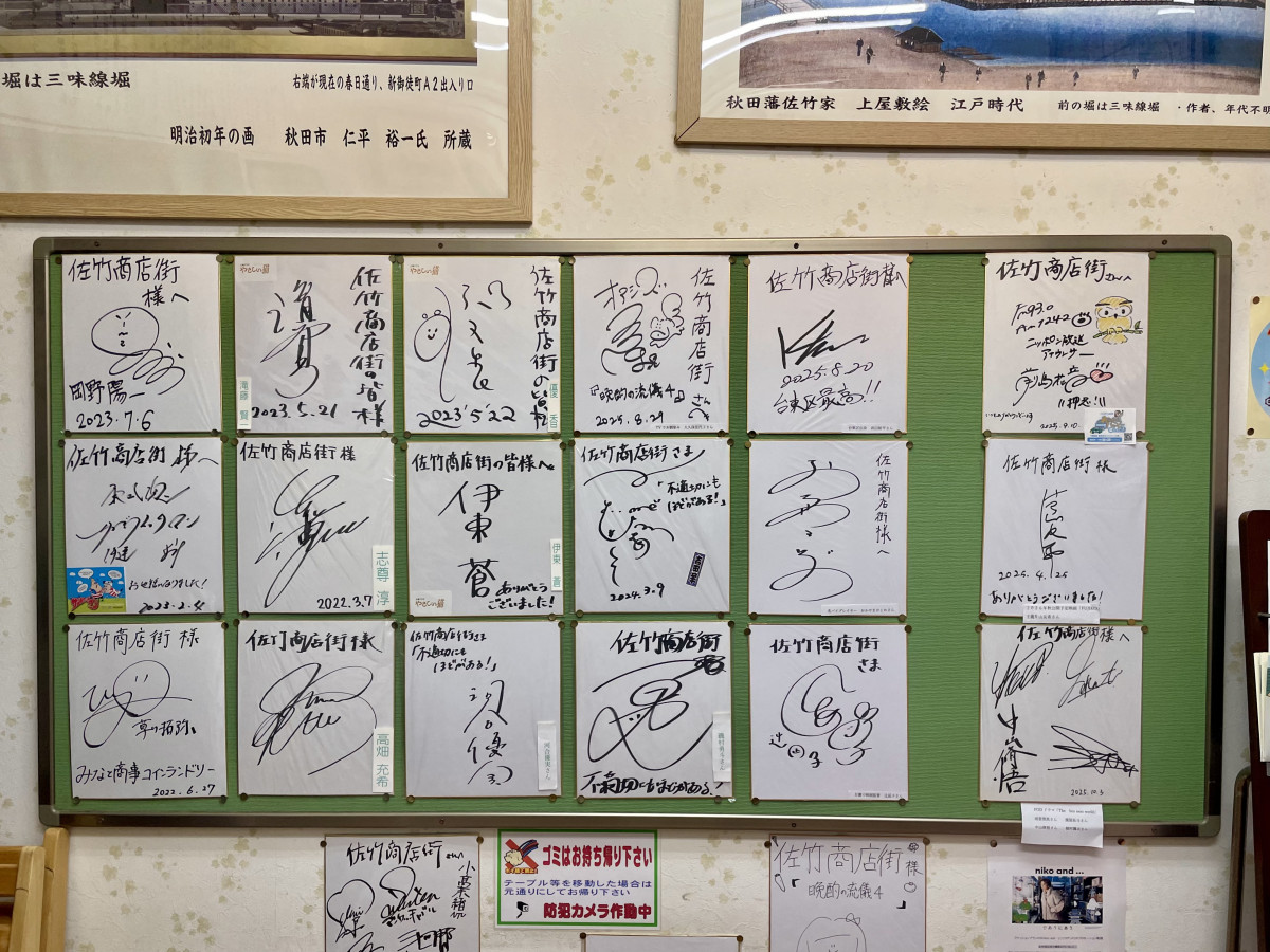 中には、撮影などで商店街にいらっしゃった著名人のサインなども飾られています。