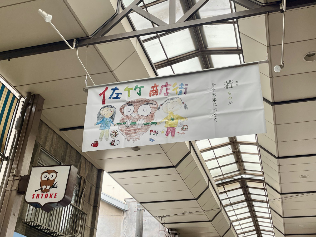 下町情緒が残る町並みを抜け、少し足を伸ばすとフクロウのマークが目立つアーケードの商店街が見えてきます。
