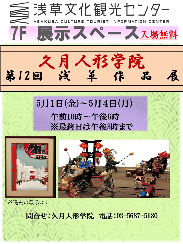 https://kyugetsu-ningyougakuin.com/topics/%e7%ac%ac12%e5%9b%9e%e3%80%80%e4%b9%85%e6%9c%88%e4%ba%ba%e5%bd%a2%e5%ad%a6%e9%99%a2%e3%80%80%e6%b5%85%e8%8d%89%e4%bd%9c%e5%93%81%e5%b1%95%e3%81%ae%e3%81%8a%e7%9f%a5%e3%82%89%e3%81%9b/